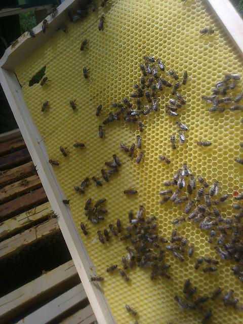 A csapolás:Lényege,hogy a kaptárból veszünk el méheket üres kereten,mézes kereten és fias keretekkel vegyesen,Legalább 6 keretet vegyünk el,amiből 3-4 a fias keret.Ha az anyát megkeressük,s elvesszük, akkor a hátramaradó méhek anyátlanná vállnak,anyabölcsőt fognak húzni.Az anyátlan méhek sokkal több mézet fognak termelni,hiszen elfogynak a dajka méhek, a fiasítások szép lassan kikelnek,s így minden méh mézet hord.Ezt kihasználva is lehet mézeltetni,s a pergetés után anyásítjuk a családot. |